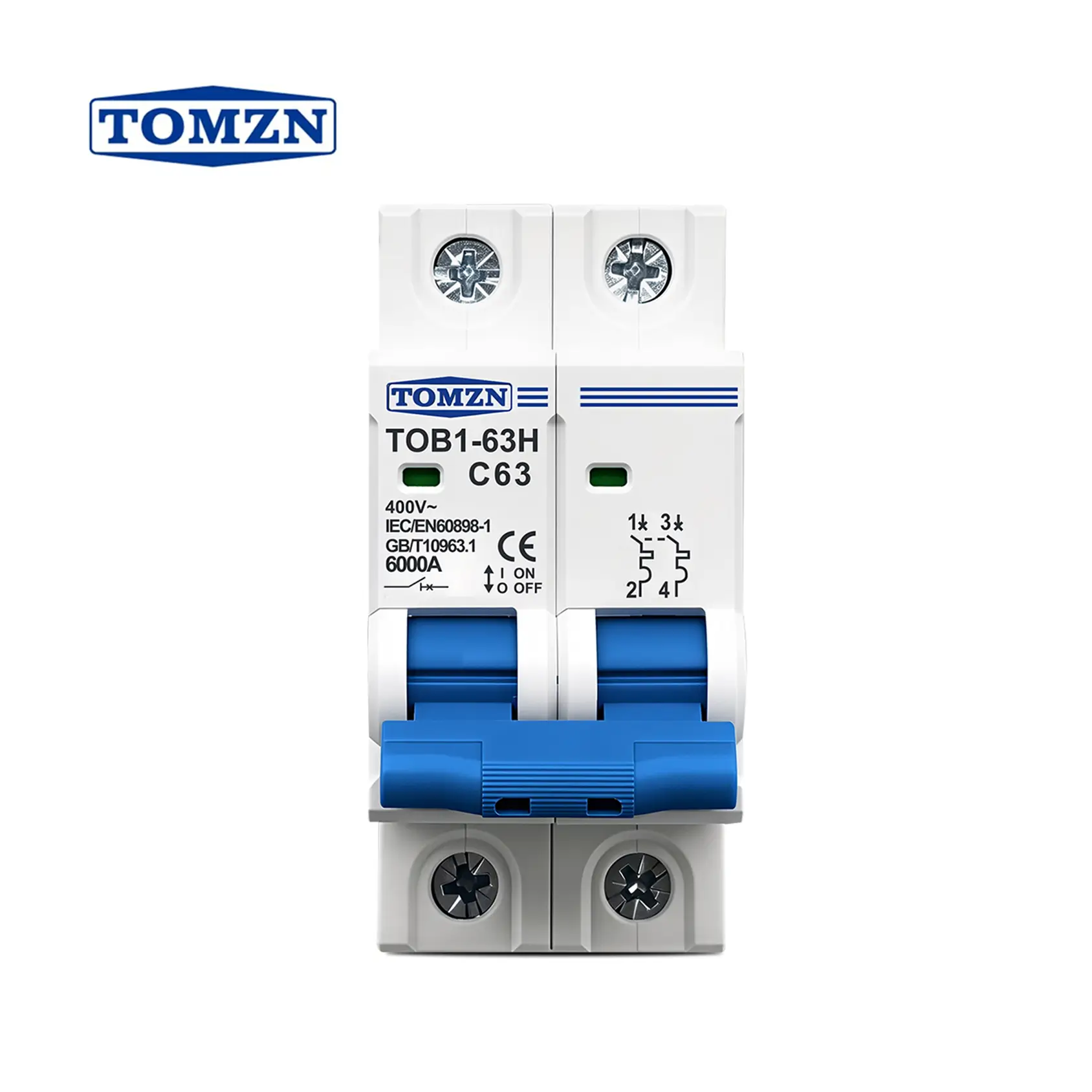 Tomzn 2P AC Circuit Breaker MCB C type 20A 63A TOB1-63H